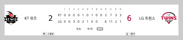 6회 말 문보경 선수의 2루타 및 박동원 희생번트, 문성주의 1안타로 적시타 1점을 또 만들어냈습니다. 7회 초 다시 KT위즈는 선두타자 조용호 선수의 안타, 이후 황재균 타자의 1점을 만들어냈습니다.